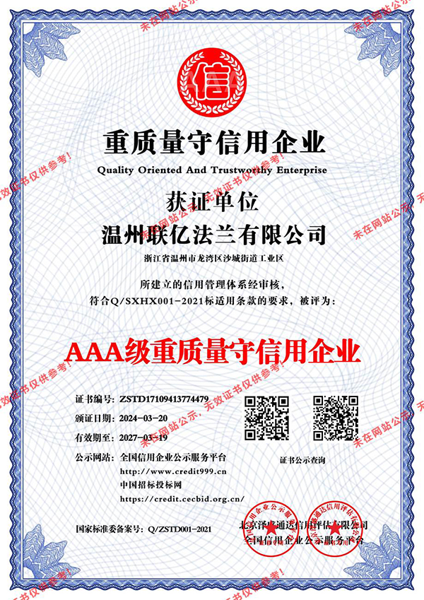 AAA級重質量守信用企業